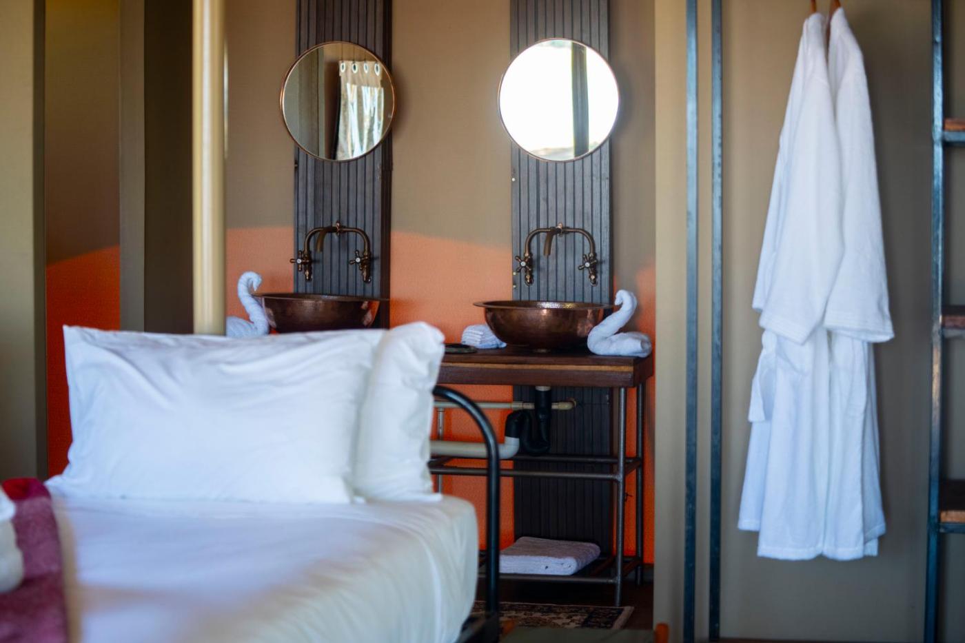 Tent. This tents standout features are the hot tub and fireplace. The tent provides a private entrance, a tea and coffee maker, a terrace with river views as well as a private bathroom featuring a walk-in shower.